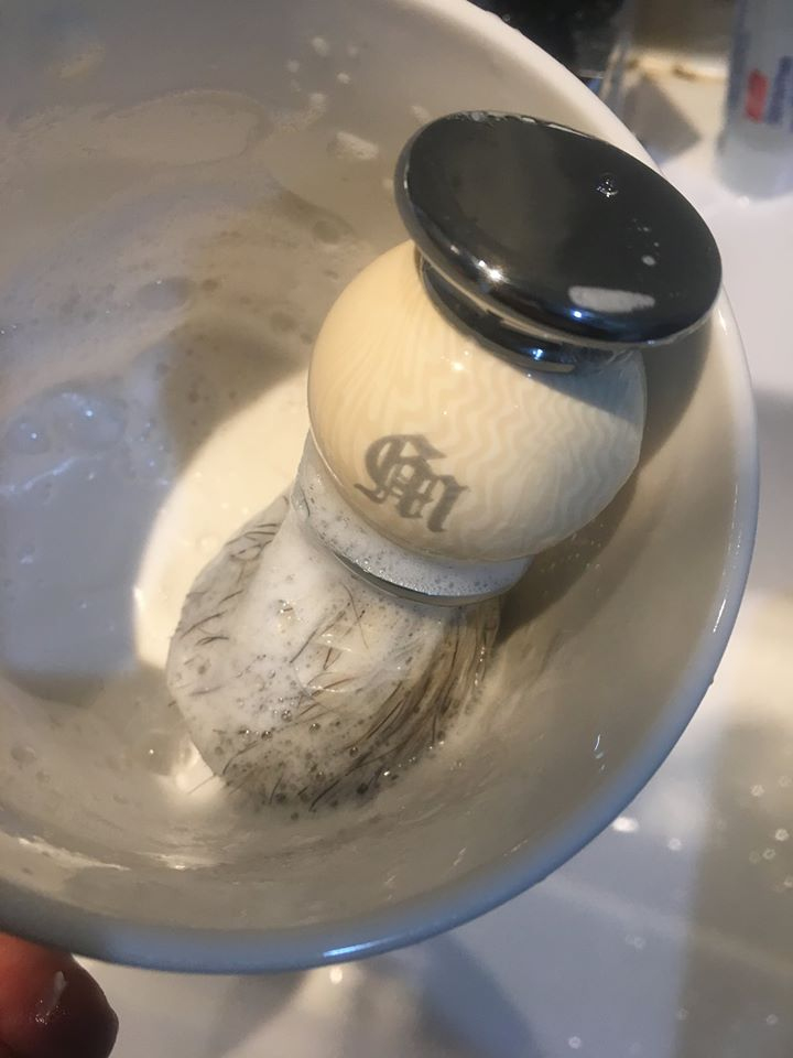 題外話,純獾毛鬍刷真的挺有感,在臉上刷泡沫時有種愉悅感。以前曾經在Barbershop裡刷過豬鬃毛刷…那個觸感…當時還以為刮鬍前都要做去角質?
