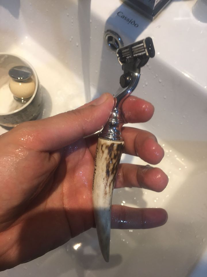 主角登場,傳世鹿角刮鬍刀,目前手動刮鬍刀中,還沒見過這種材質。