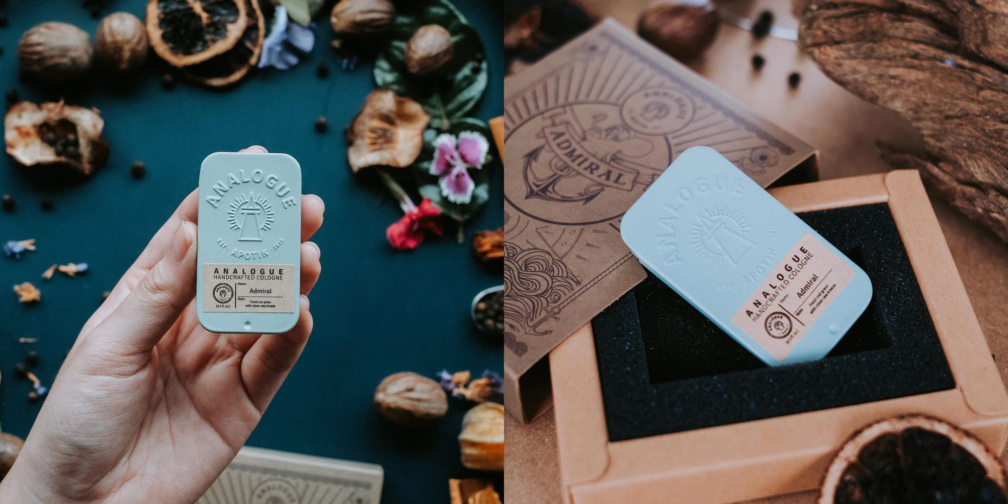Analogue Apotik - 巡航 固體香水香膏(Admiral),採用蜂蠟、乳木果油、杏仁油、芳香油...等天然素材為膏體基底,以清新海洋木質調為香氛主體,注入雪松、伯爵茶、東加豆、綠橘、玉蘭花、麝香、胡椒...等,打造出率性灑脫的男香,散發自信迷人的氣息,展現自我個性作風的男士風情。
