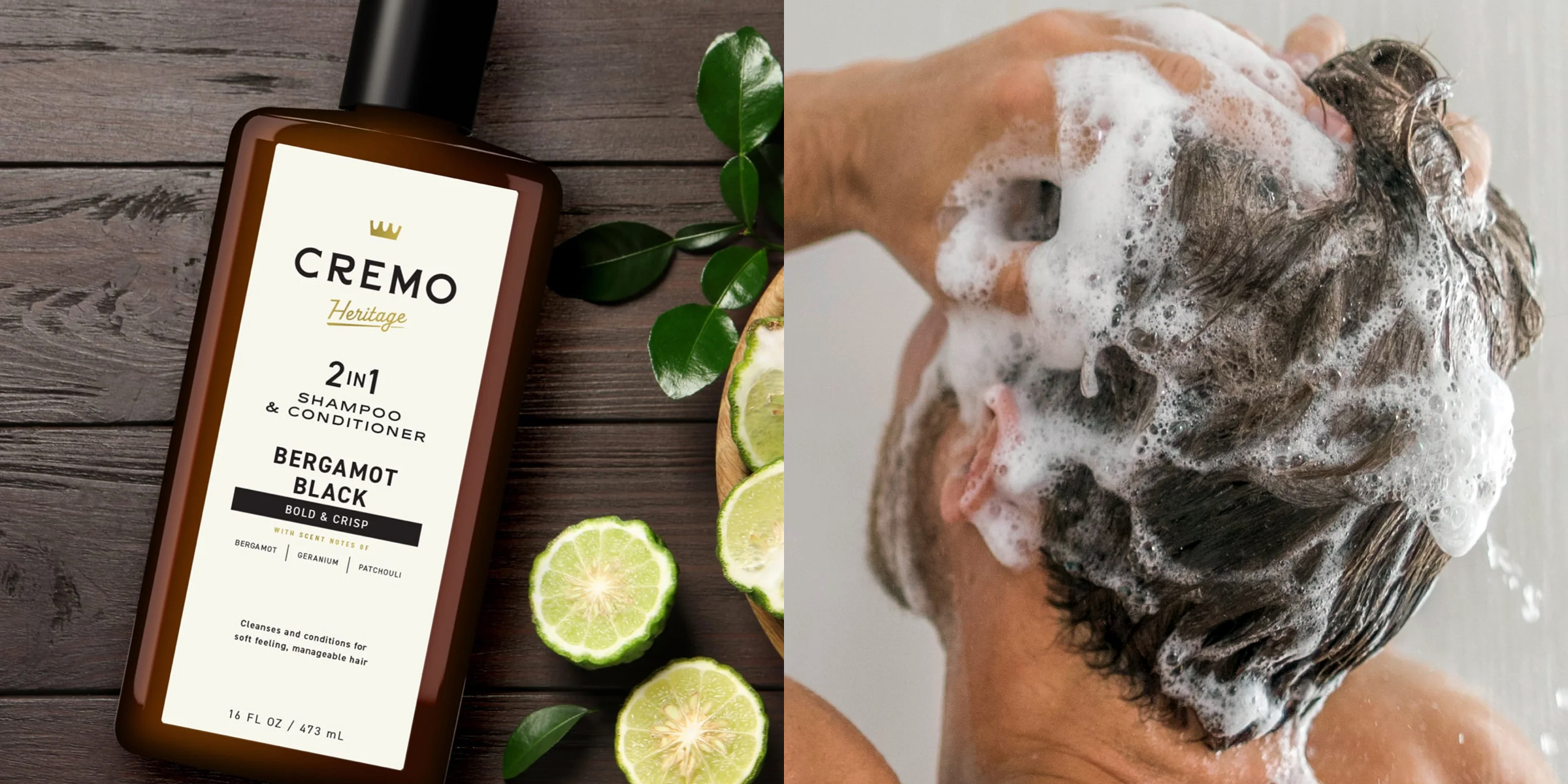 Cremo 黑色傳奇 香水洗髮精(洗髮護髮二合一),採用清新木質柑橘調為基底,調和佛手柑、天竺葵、廣藿香、大地氣息...等,擁有雅緻洗鍊的現代都會香氛,彷彿身在紐約第五大道的時尚街頭,散發率性灑脫的迷人氣息,洗頭後頭皮有自然舒爽呼吸感,頭髮柔順蓬鬆輕盈、控油保濕不毛躁。