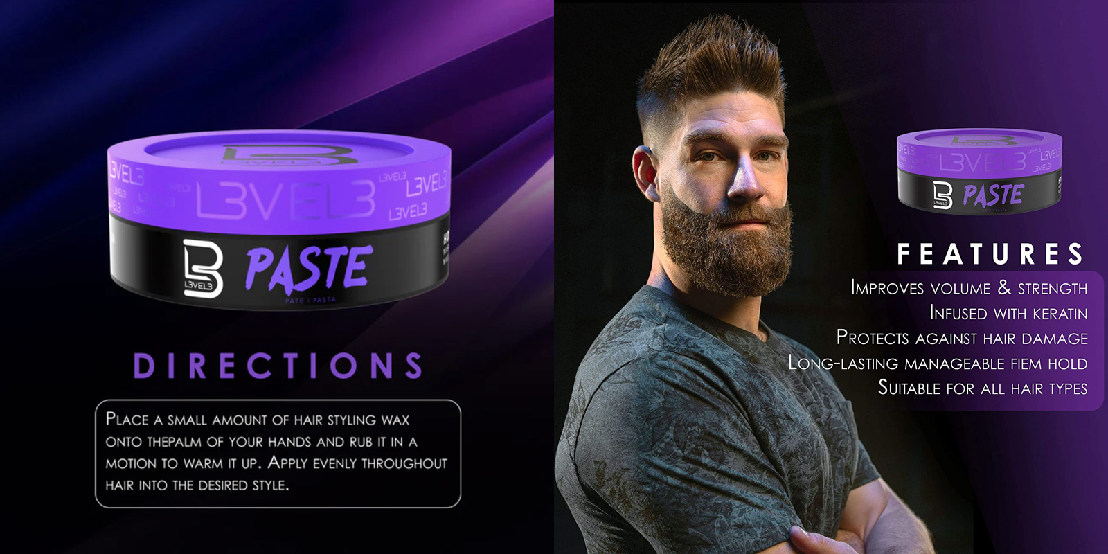 L3VEL3 強力定型 無光澤髮蠟(Pro Styling Paste),提供全方位的造型所需,高黏度的滑順質地,造型後乾爽不黏膩,擁有強力的定型力、支撐性,髮束線條感自然蓬鬆,髮型全天持久有型不扁塌,優異的塑形力能夠簡單上手抓出各種造型,無論是手撥油頭,或是各種休閒髮型皆可適用,重塑性佳,可多次重塑,或是重新梳理不同髮型,添加角蛋白護髮配方,同時能夠減少頭髮毛躁蓬亂、修護受損髮質、提升髮絲強度,適用於各種髮質。