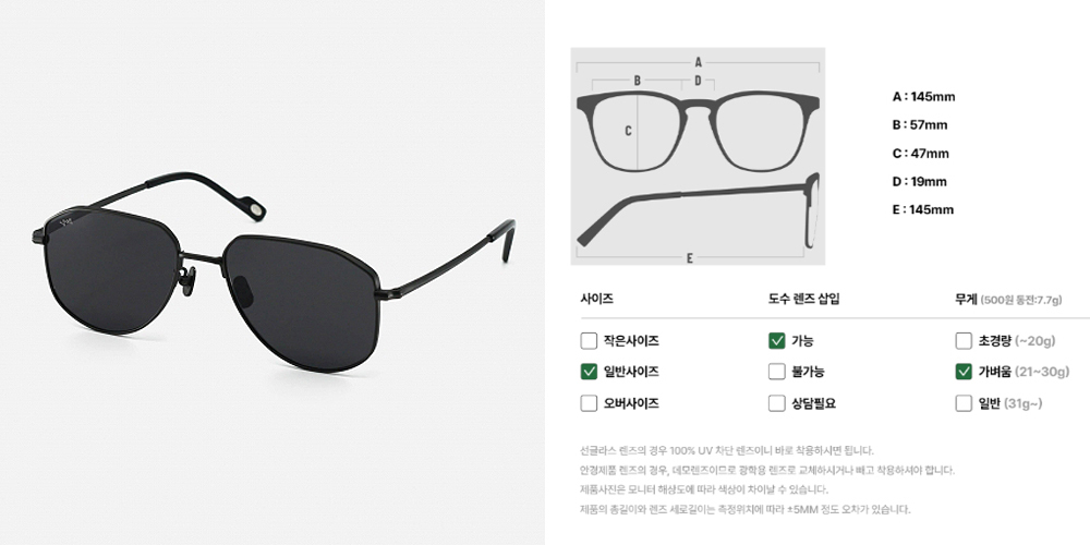 韓國 March Eyewear - 太陽眼鏡 / 墨鏡(Potter C1 / 消光黑)