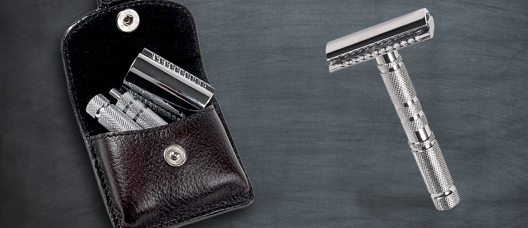 Parker A1R 四件式 復古雙面安全刮鬍刀,專為旅行、出差...等需求為概念設計,採用可拆卸組裝式的設計,附有皮革收納套,方便收納與外出攜帶,刀身手柄以細膩的菱格紋來增加防滑抓握,中短柄的設計,在使用上有更靈活順暢的俐落手感。