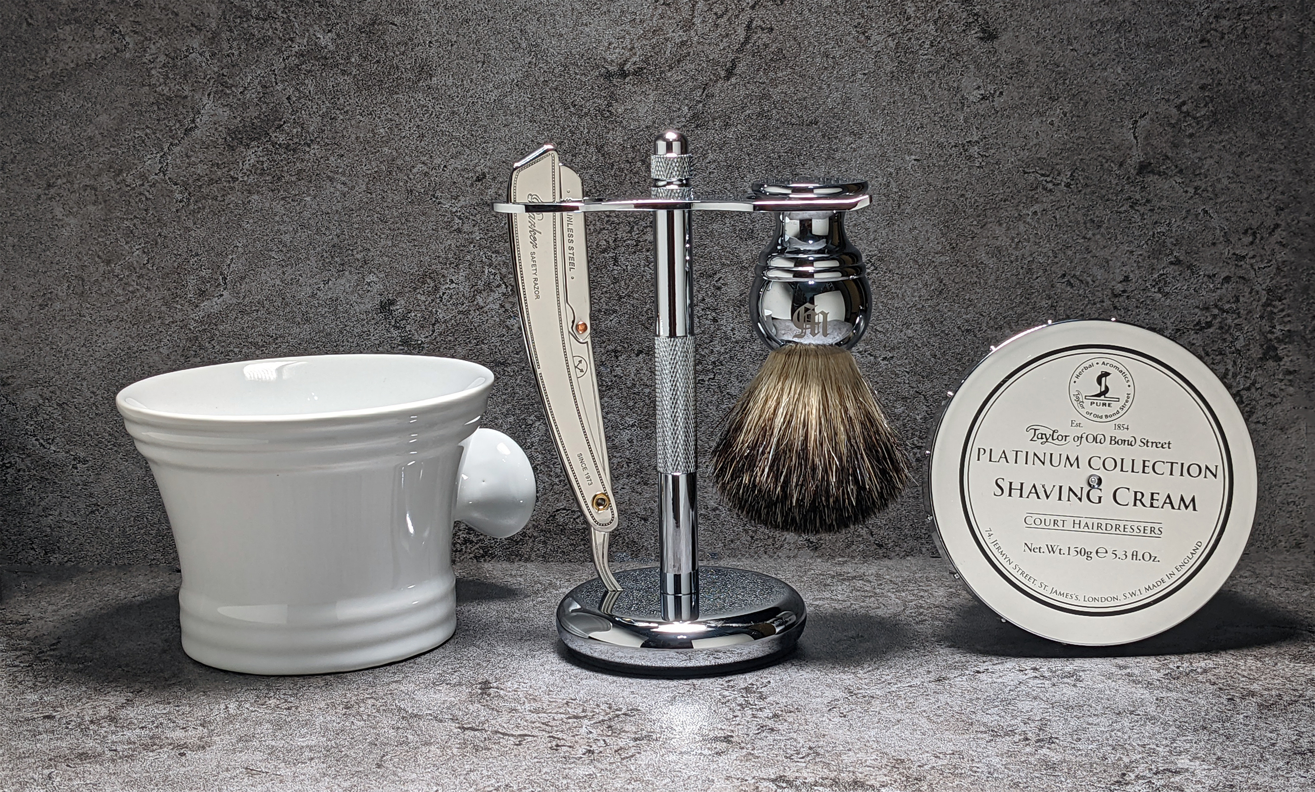 組合內容:Parker SRX 經典款 直式剃刀、Grand Manner 純獾毛刮鬍刷(銀)、Grand Manner 剃刀收納架