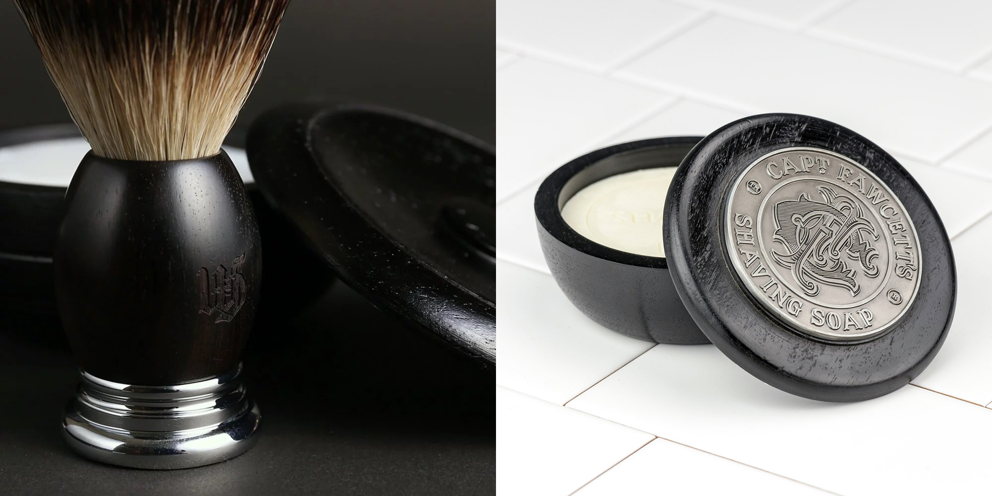 ★ 76折 ★ 黑檀木 獾毛刮鬍刷 & Captain 菸草琥珀 刮鬍皂 & 刮鬍碗 超值組合