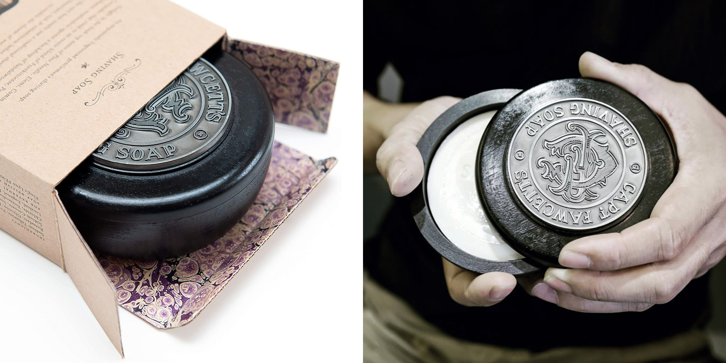 Captain Fawcett 豪華經典 菸草琥珀 刮鬍皂 & 刮鬍碗,為品牌最經典知名的修容產品之一,品牌獨家秘傳的配方,擁有綿密滑順的濃稠泡沫,能夠軟化鬍鬚、保護肌膚、減少摩擦感、大幅降低刮傷破皮,優異的保護性,非常適合將鬍子徹底刮除乾淨、敏感肌、剃刀的使用者,讓刮鬍過程有著無與倫比的舒適感受,散發沈穩大器又浪漫的異國情懷木質調氣息。