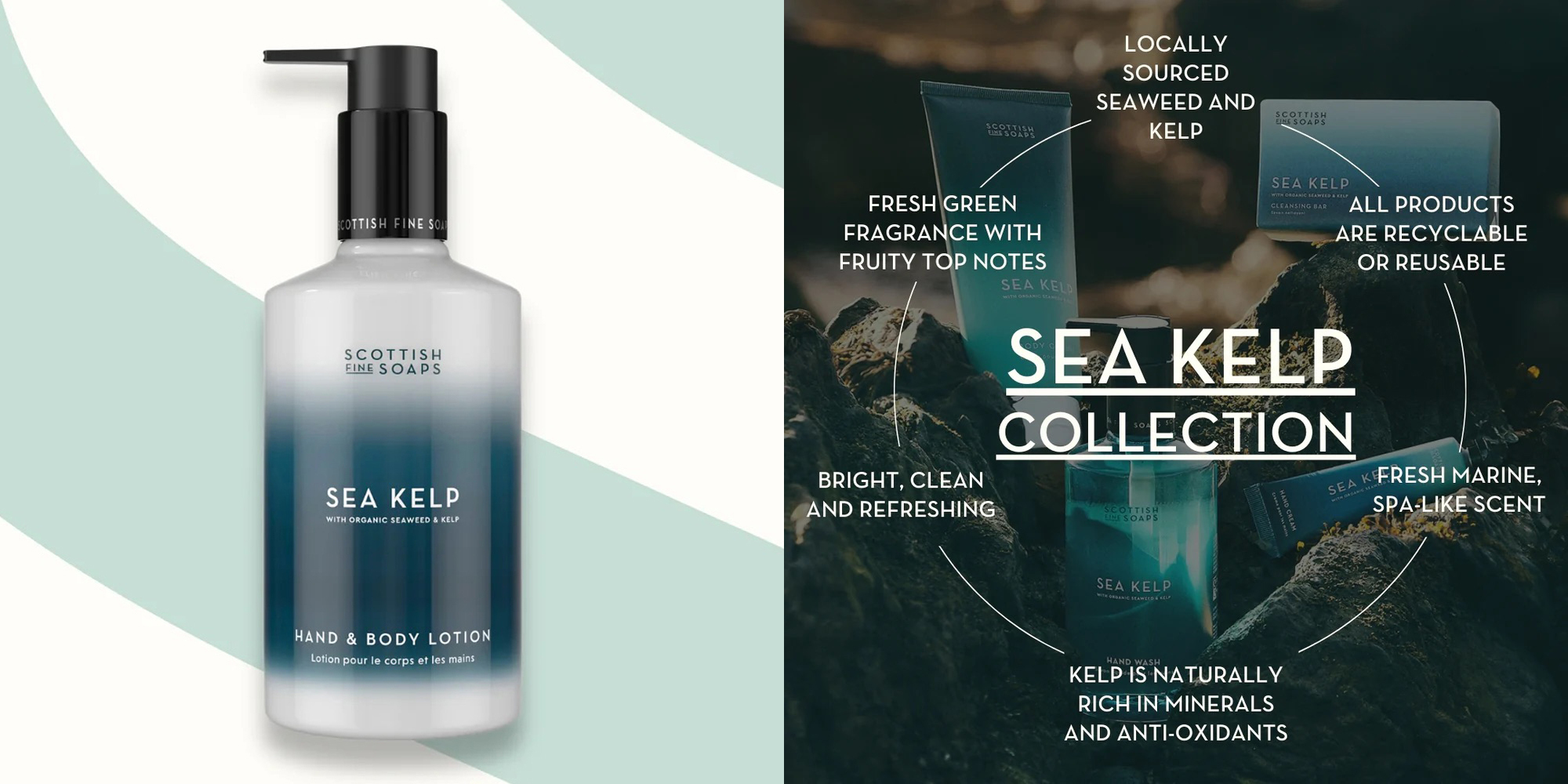 The Scottish Fine Soaps 蘇格蘭海風 全效護理 身體保濕乳液 / 護手霜(Sea Kelp Hand & Body Lotion),為品牌經典的香氛洗沐保養系列,選用高品質原物料、天然香氛素材,溫和親膚的配方,適用於所有膚質(敏感肌、痘痘肌...等皆適用),添加蘇格蘭天然野生海藻、海帶萃取物、尿囊素、天然抗氧化劑、紅花籽萃取物、天然精油...等,富含天然礦物質、維生素與植萃營養成分,能夠舒緩放鬆肌膚、長效鎖水保濕、舒緩敏感乾癢、維持肌膚柔嫩光滑與健康、減少暗沉,質地清爽不黏膩、吸收快速,無論是日常護膚保養,或是秋冬乾冷季節加強護理,都非常適合使用,有著清新的海洋木質調氣息,感受海洋的微風,交織著海岸林木花植的香氛,令人舒心療癒的香氣,彷彿壓力與煩惱都隨波逐流而去。