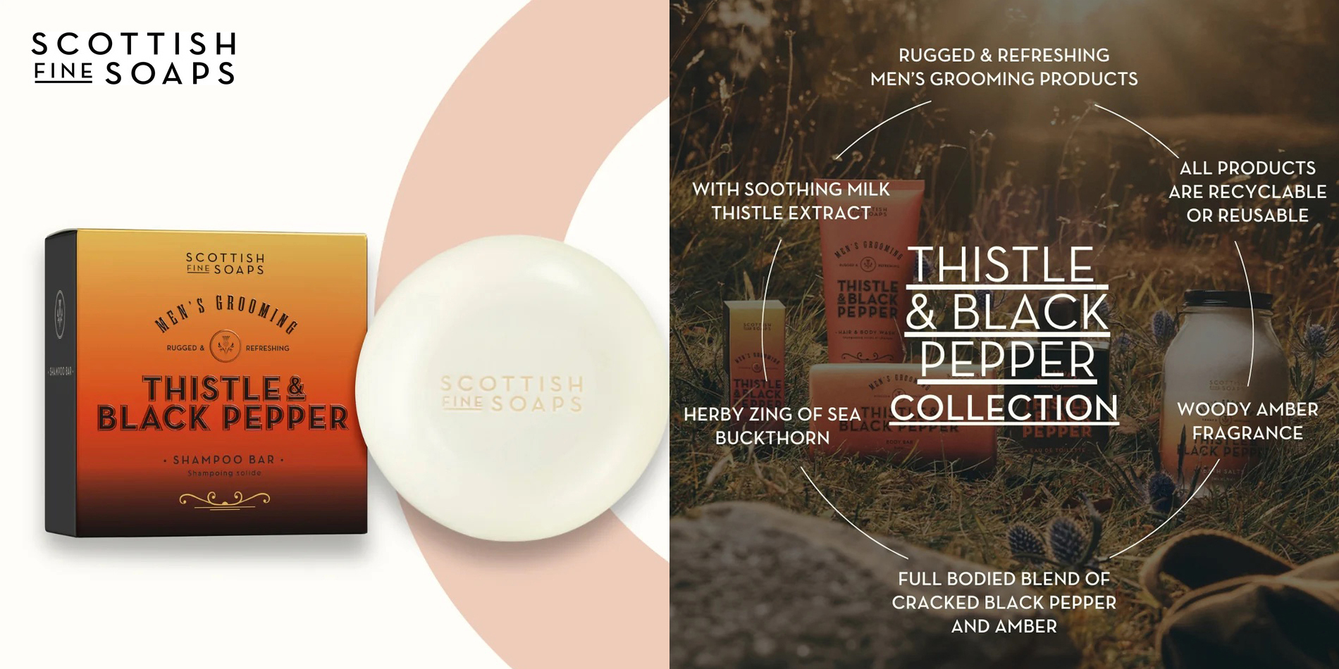 英國 Scottish Fine Soaps - 經典洗髮皂 / 洗髮餅(控油健髮 / Thistle & Black Pepper)