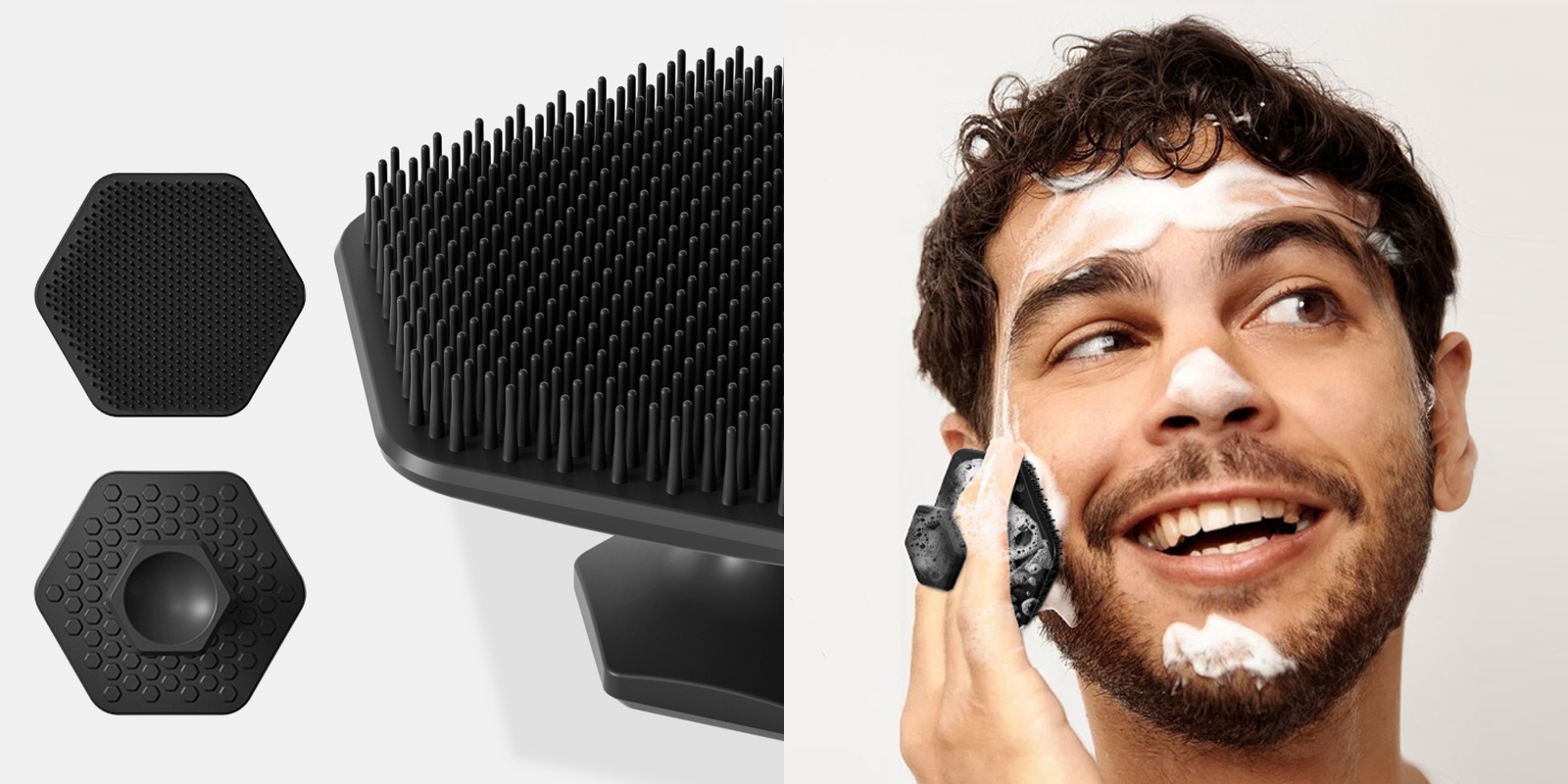 • 「親膚按摩」輕柔細緻的矽膠刷毛,洗臉按摩的同時,可促進角質新陳代謝、舒緩放鬆臉部,助於後續保養品的吸收。