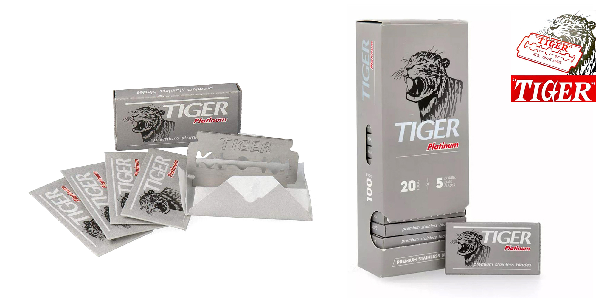 捷克 Tiger - 捷克之虎 白金鍍膜 雙面刮鬍刀片(5片裝 / 通用傳統復古雙刃安全刮鬍刀)